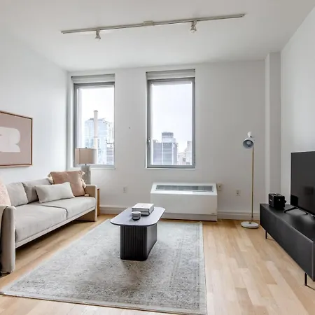 If you want to stay in the Manhattan district, the 2-room Blueground Midtown W Gym Nr Hudson River Park Nyc-1459 is a good choice located, about a 25-minute walk from Manhattan Skyline. Also, take advantage of fitness classes to enrich your leisure.